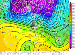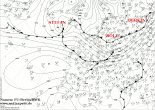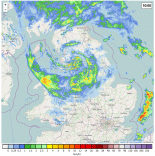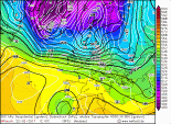 Orkantief "Thomas" am 23. Februar Die nördliche Strömung an der Westseite tiefem Luftdrucks über Island resultierte am 21.02. in einem Kaltluftvorstoß über dem Nordatlantik. Die durch die Tiefs "Rolf" und "Stefan" bereist ausgeprägte Frontalzone wurde dadurch nomals verstärkt. Warme subtropische Luftmassen lagen weit im Norden über dem Atlantik (5 °C in 850 hPa bei ca. 50 °N). Mit dem Kaltluftvorstoß verstärkte sich der horizontale Temperaturgradient, sodass sich eine Differenz von ca. 10 K auf nur wenigen 100 Kilometern einstellte. Hebung an der Vorderseite des nach Süden vorstoßenden Höhentrogs machte die Entstehung eines Bodentiefs am Mittag des 21.02. knapp 1000 Kilometer westlich von Irland möglich. Innerhalb von 24 Stunden sank der Bodendruck in der Folge von ca. 1005 hPa auf unter 980 hPa. Die rasche Entwicklung des Tiefs, welches mittlerweile den Namen "Thomas" bzw. im englischen Sprachraum "Doris" erhalten hatte, ist wahrscheinlich neben der günstigen Lage vorderseitig des Höhentrogs auch mit der sogenannten "Dry Intrusion" verbunden. Dabei gelangt trockene Luft stratosphärischem Ursprungs in die obere Troposphäre und scheibt sich unter die feuchte Luft in Zentrumsnähe des Tiefs. Auf dem Wasserdampfbild vom 23.02. 03 UTC ist die geringe Konzentration über Irland gut ersichtlich. Druckfall resultiert in der Regel durch die "Dry Intrusion" da die feuchten Luftmassen gehoben werden und es zur Kondensation kommt. Die frei werdende latente Wärme führt zu einer Erwärmung der Luft, was gleichzeitig mit einem Druckfall verbunden ist. Neben dem Druckfall hat die Dry Intrusion bei einigen Tiefdruckgebieten nach dem Modell der Shapiro-Keyser-Zyklone auch die Ausbildung eines Sting Jets (hohe Windgeschwindigkeiten an der Süd- bzw. Südwestflanke des Tiefs) zur Folge. Ob bei "Thomas" ein Sting Jet vorhanden war lässt sich nicht abschließend bestätigen. Die hohen Windgeschwindigkeiten im Landesinnern von England könnten allerdings auf einen Sting Jet zurückzuführen sein. Die Dry Intrusion von stratosphärischer Luft ist jedenfall auf den Wasserdampfbildern gut erkennbar.