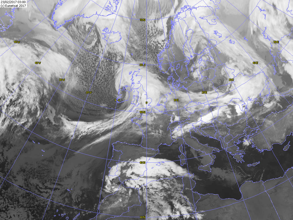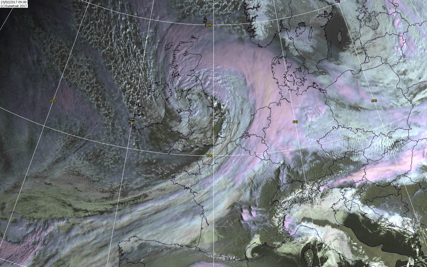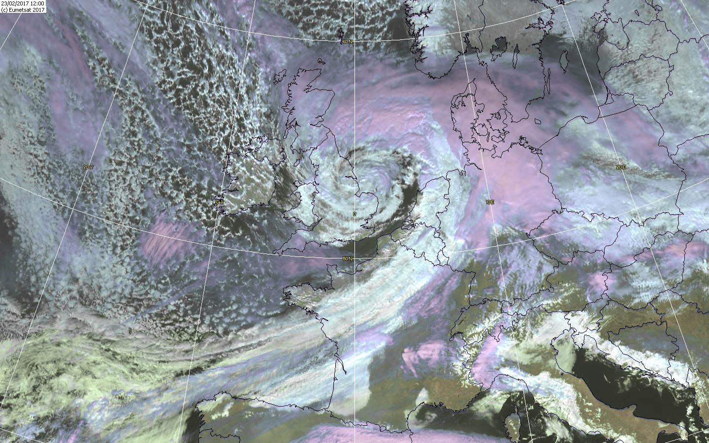 Sturm (Orkantief "Thomas") West- und Mitteleuropa 22.-24.02.2017 Satellitenbild Orkan "Thomas" am 23.02.. 15 UTC Quelle: Woksat, |