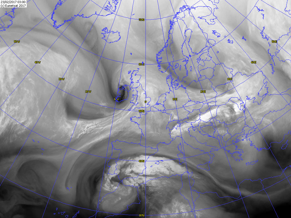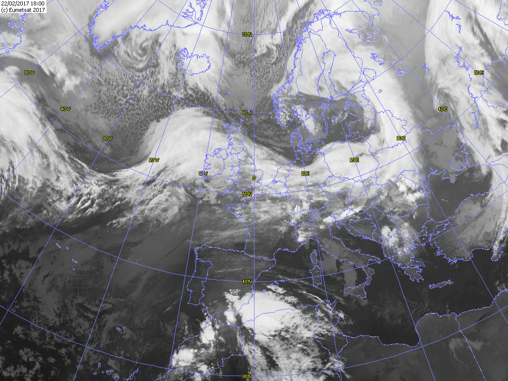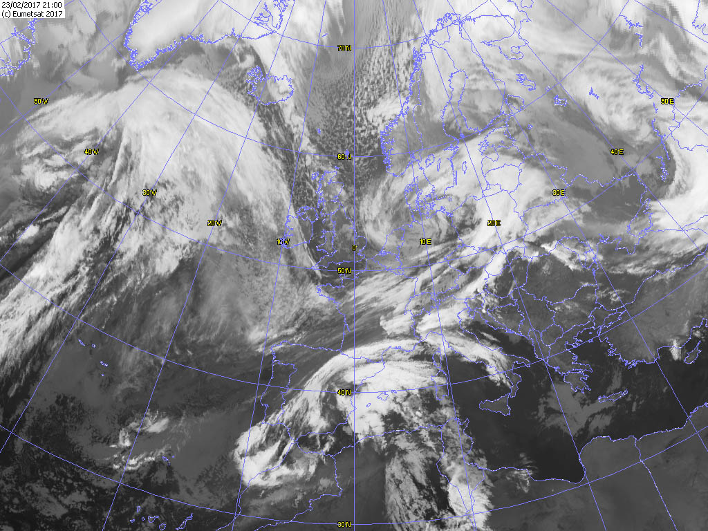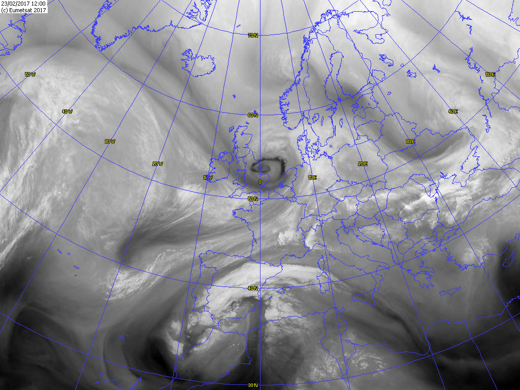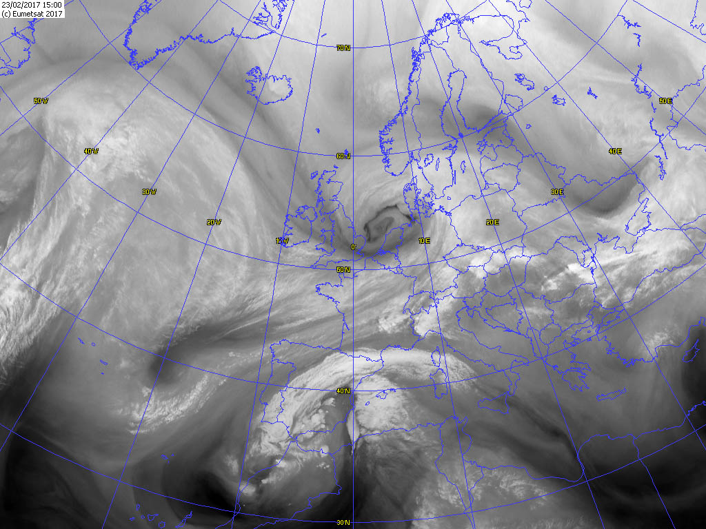 Sturm (Orkantief "Thomas") West- und Mitteleuropa 22.-24.02.2017 Satellitenbild Orkan "Thomas" am 23.02.. 15 UTC Quelle: Woksat, |
