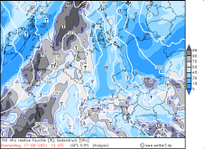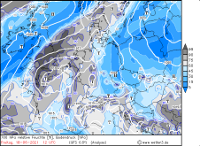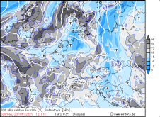 Thus, a gust of 85 km/h was registered on the Feldberg, and 78 km/h in Rheinstetten. The following animation shows the 2m temperature